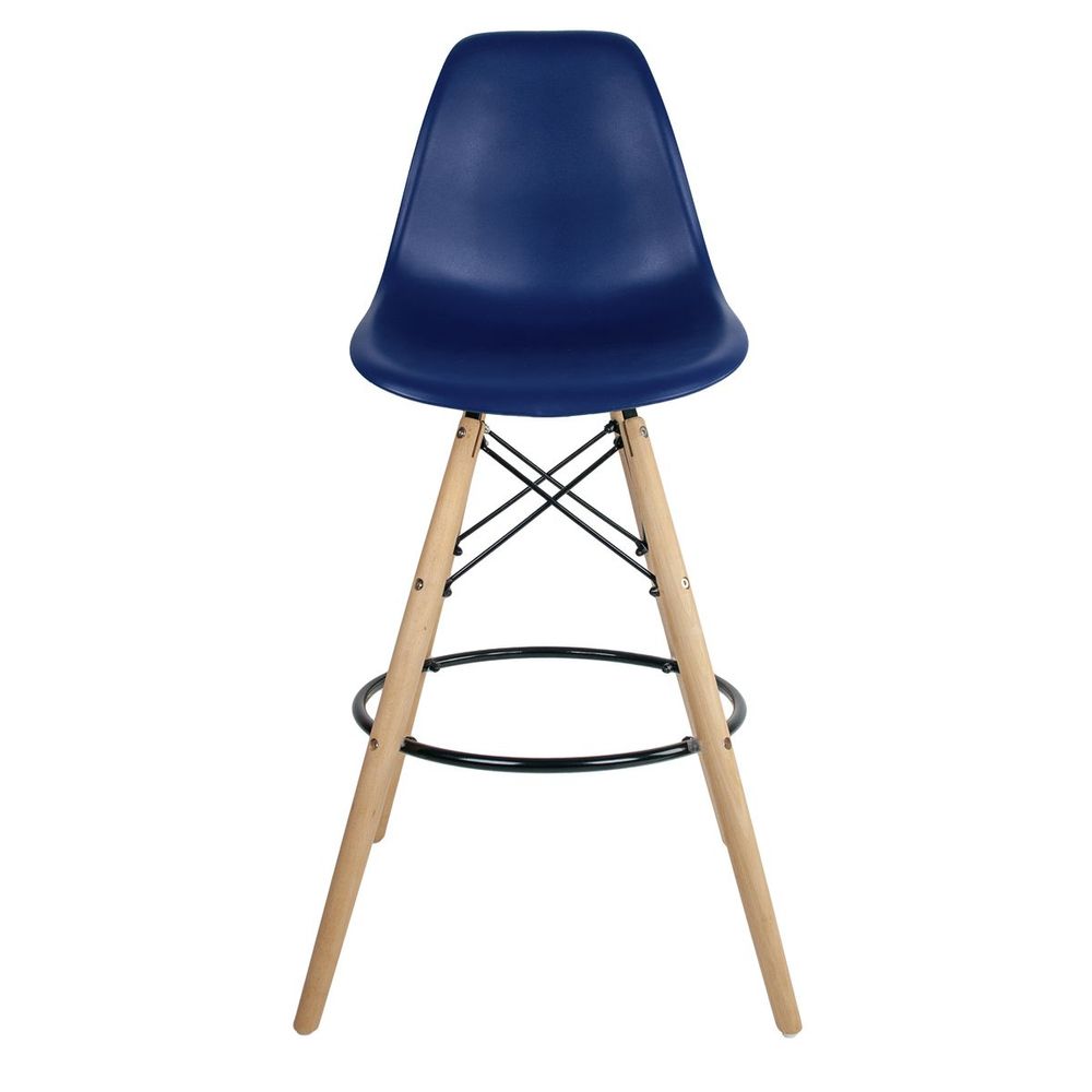 Banqueta Eames Azul Bic Empório Tiffany Base Em Madeira