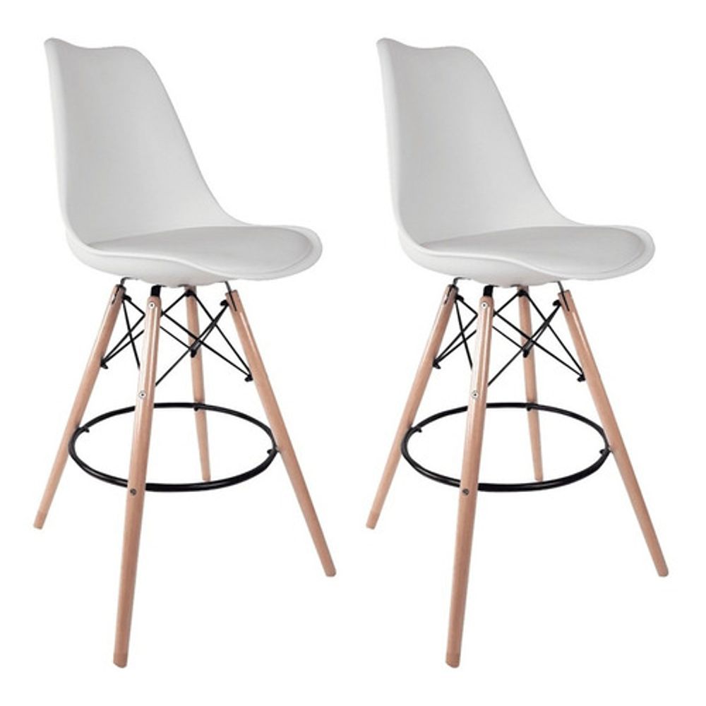 Conjunto Com 2 Banquetas Saarinen Branca Empório Tiffany Base Em Madeira