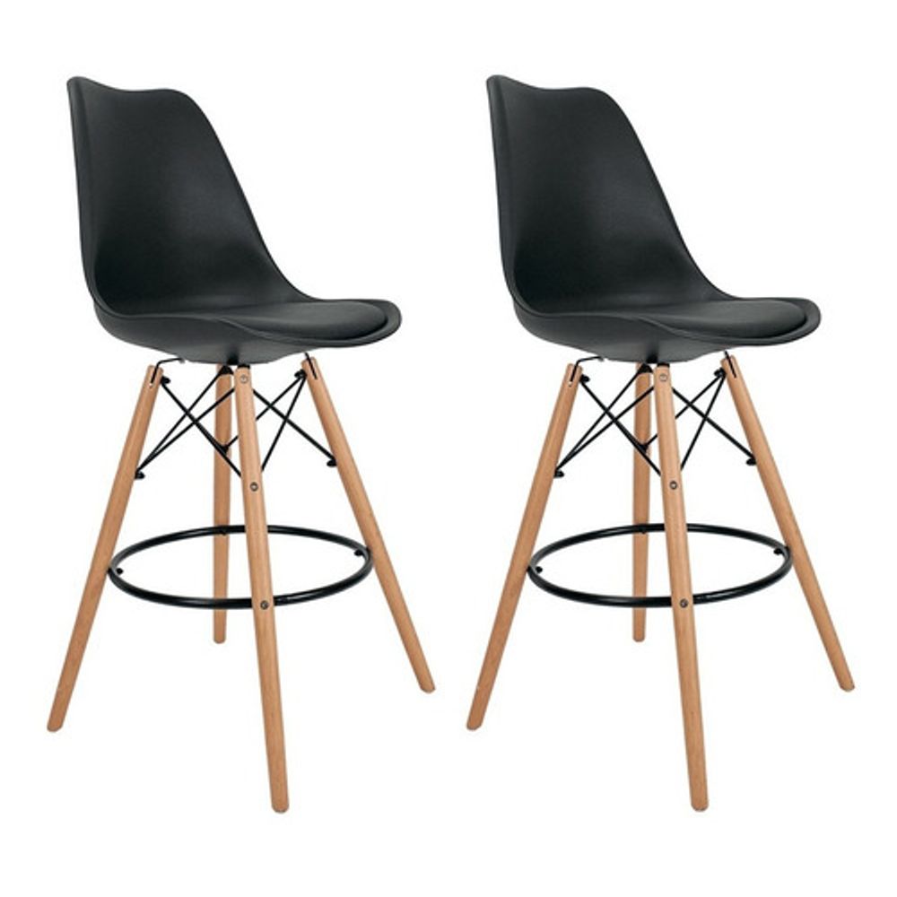 Conjunto Com 2 Banquetas Saarinen Preta Empório Tiffany Base Em Madeira
