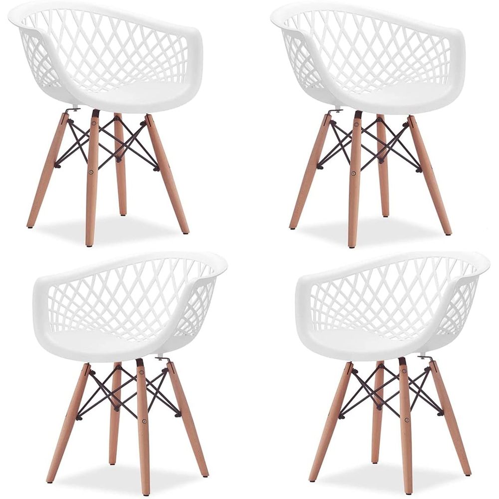 Conjunto Com 4 Cadeiras Web Branca Empório Tiffany Base Em Madeira