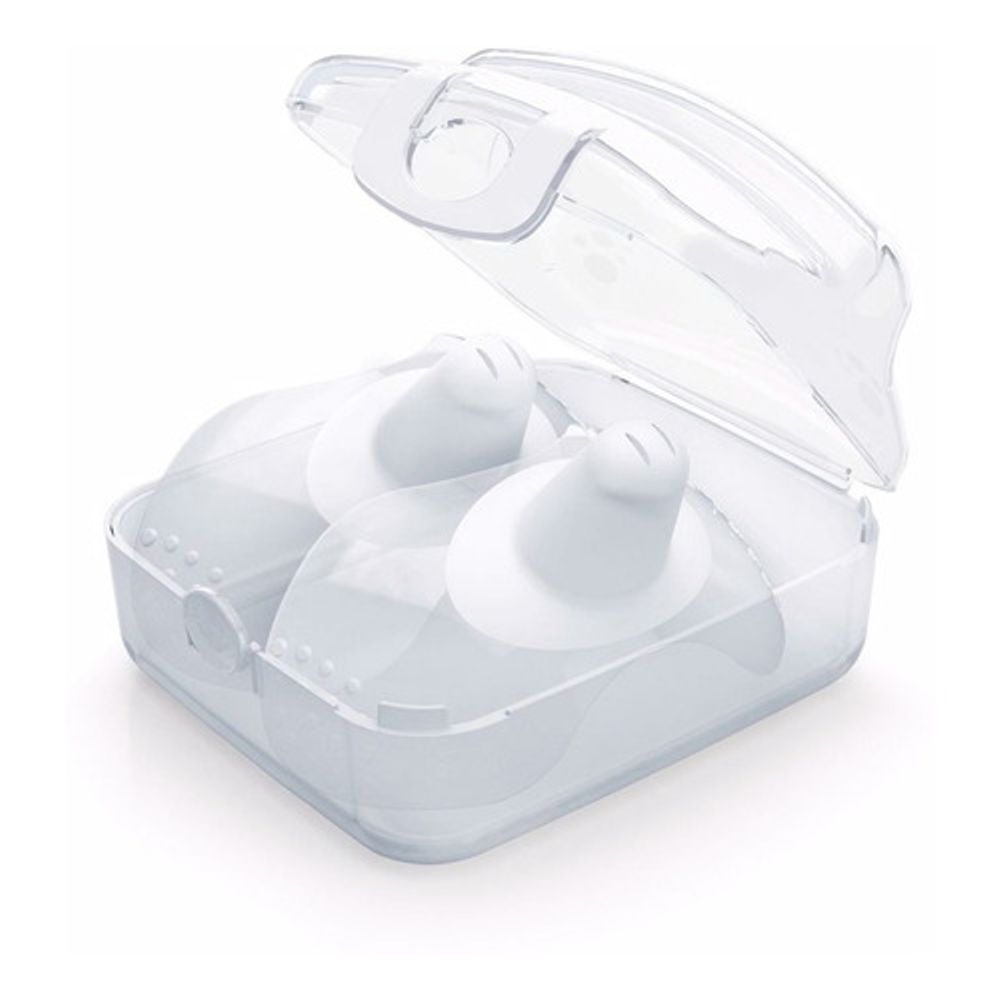 O produto conta com um estojo duplo que pode ser esterilizada em apenas 1 passo. Sua forma ergonômica, maximiza o contato do nariz e queixo do bebê ao seio materno e sua fina espessura ajuda no contato pele-a-pele entre mamães e bebês. Suas fissuras verticais ajudam, ainda, a manter o ritmo natural da sucção do leite. Permitem máximo contato de pele com a pele: os únicos com bordas finas superiores e inferiores para assegurar o contato do queixo e do nariz do bebê com o seio da mãe. Formato alongado permite máxima aderência e encaixe no seio. Graças ao silicone bem fino e macio, adere perfeitamente e assegura um encaixe perfeito. Relevos especiais nas extremidades: ajudam a colocar e retirar os protetores de seios da forma correta e confortável. Bico ligeiramente achatado, seu design assegura uma pega natural do mamilo. Furos específicos que permitem um fluxo natural e contínuo do leite, sem interrupções. Acompanha uma caixa protetora prática e esterilizantes em conjunto com os protetores de seio. As áreas em relevo nos cantos, ajudam a colocar e a remover os protetores de seios de forma fácil e correta. A tetina ligeiramente achatada, foi desenvolvida para garantir uma pega natural no mamilo.